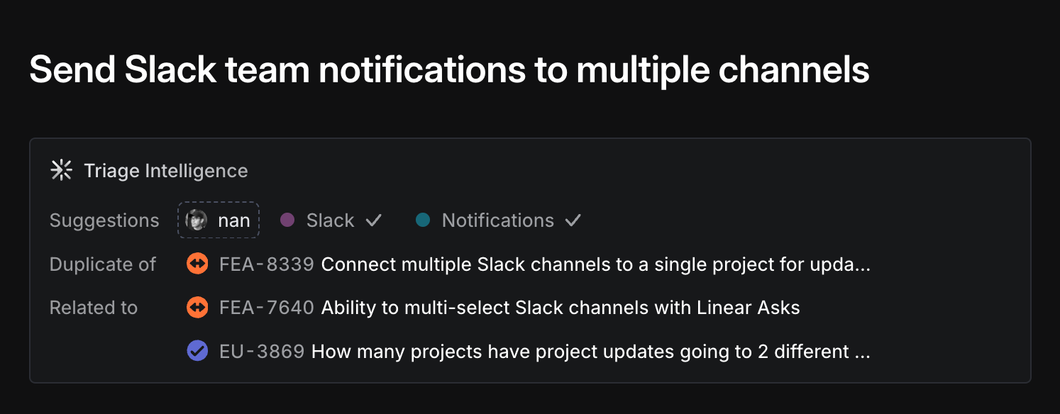 AILinear AgentAI AgentsBuild and deploy AI agents that work alongside your teamAssign and delegate issuesMCP serverTriage IntelligenceRoute issues by using LLMs to infer issue properties and relationships.PreviousIntegrationsNextFind and filter
