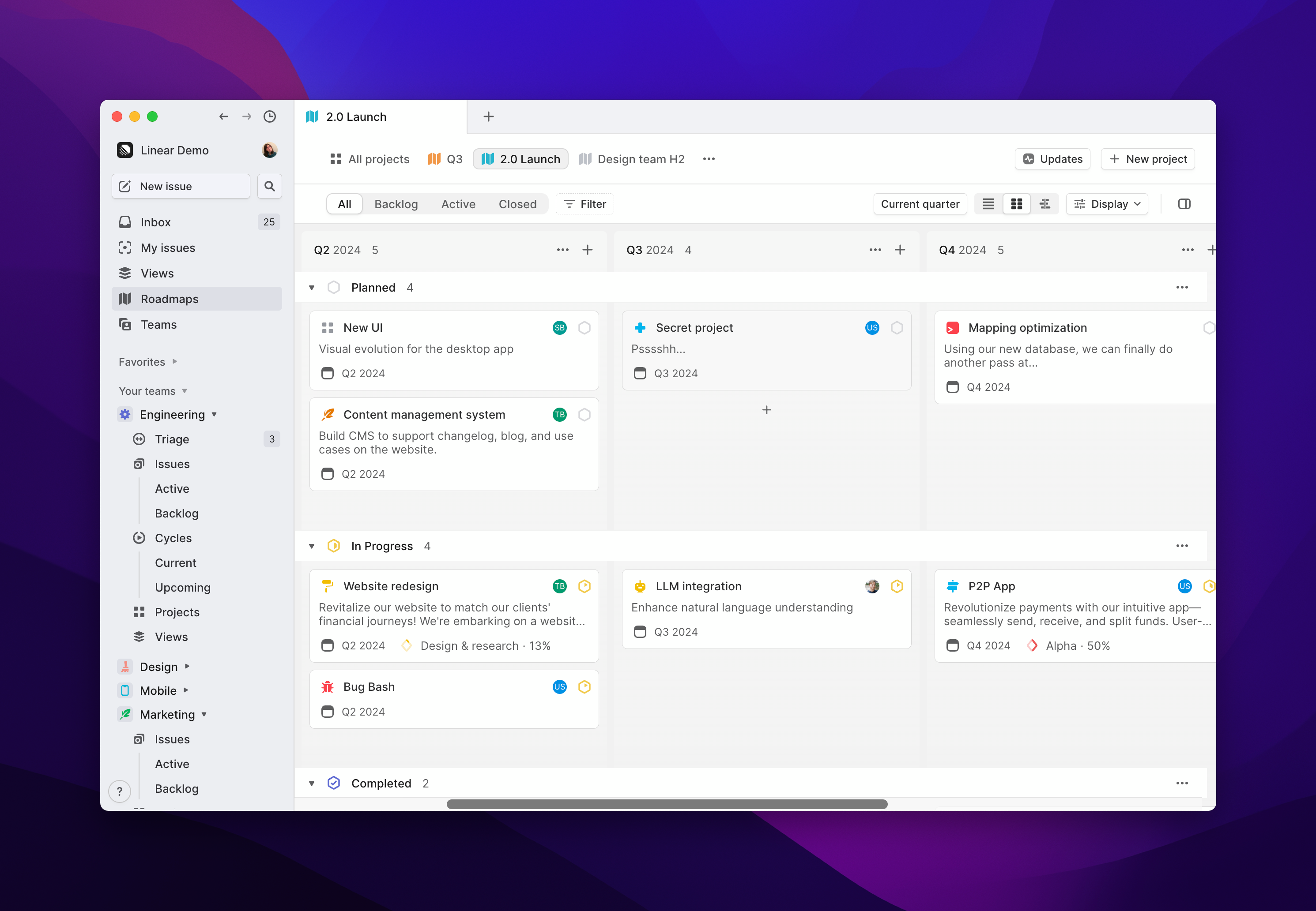 We've redesigned projects in Linear to support all of your product work from idea through execution.