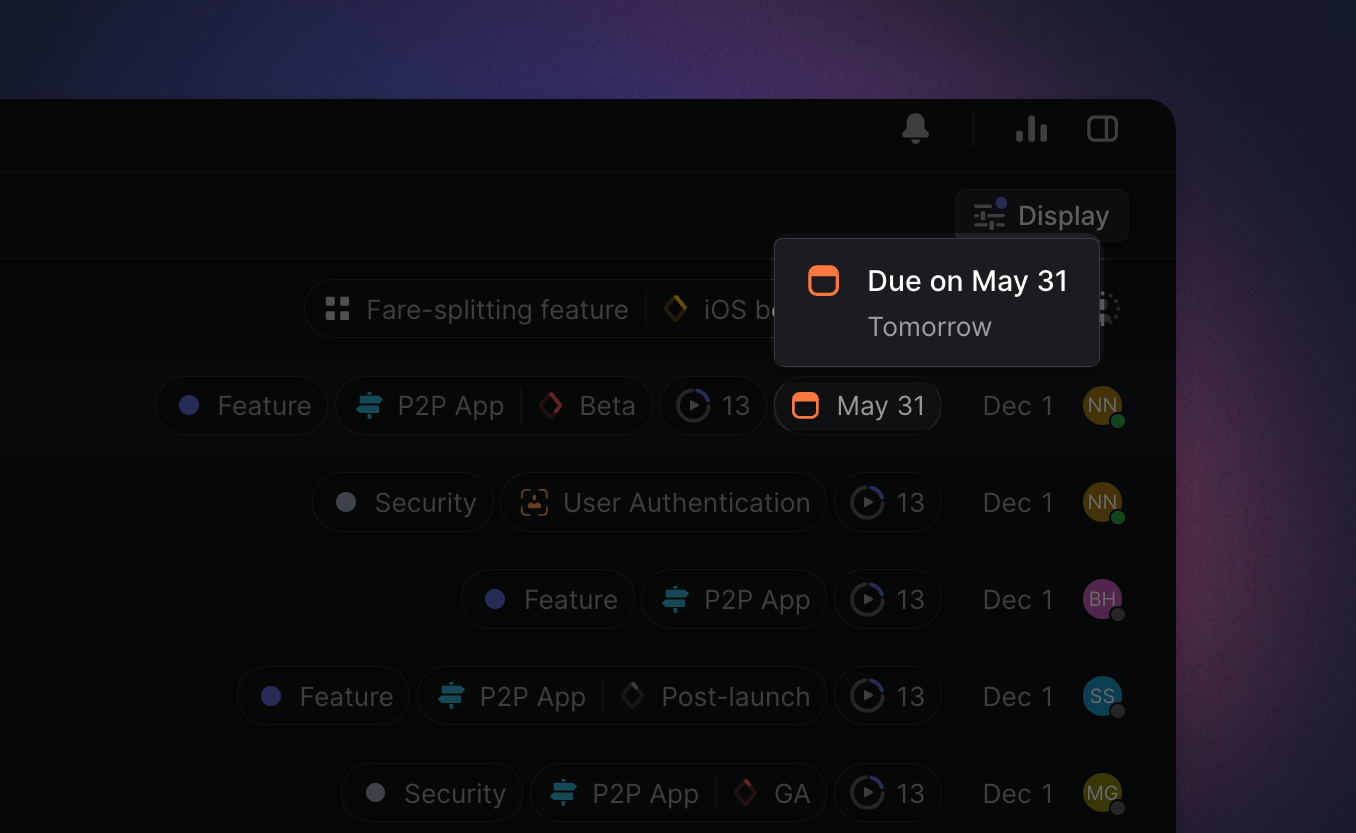 Add due dates to issues to help your team keep track of time-sensitive work.