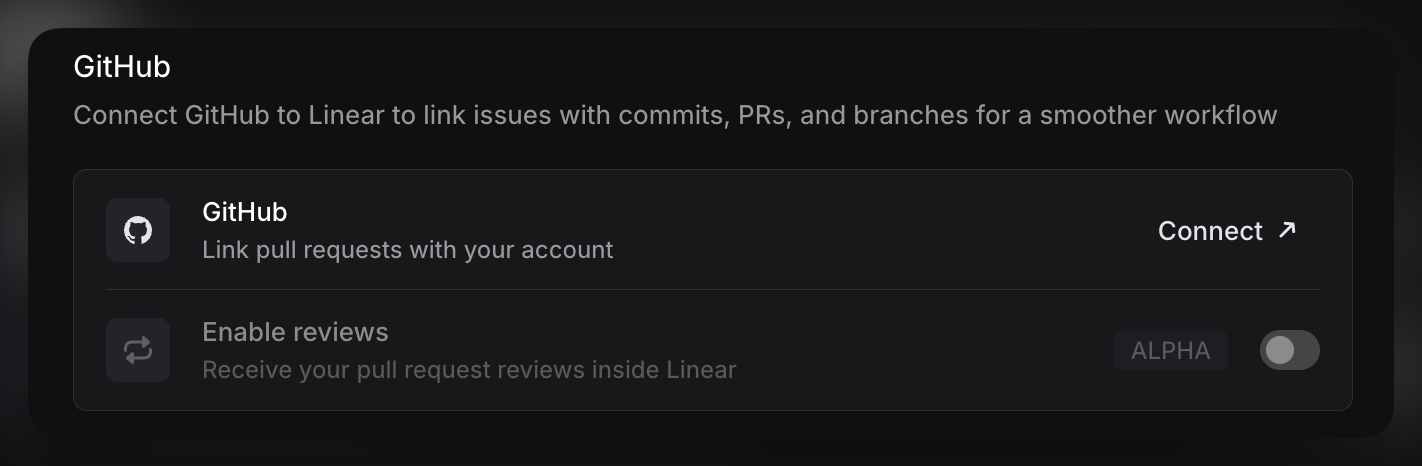To connect your account, navigate to Settings > Connected accounts. Once connected, any synced activity from GitHub will be correctly attributed to you in Linear.