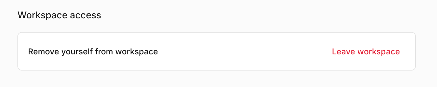 To leave the workspace, click the Leave workspace option in Settings > Profile. Once removed, you no longer have access to the workspace. An admin will have to unsuspend your account in order for you to log back in.